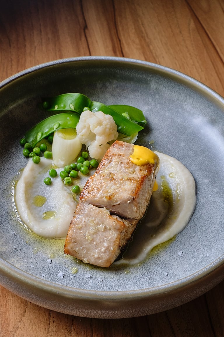 En A La Brasa, la cocina de Cartagena se reinterpreta a través de conceptos actuales como el Slow Food y la fusión gastronómica, poniendo en valor el producto, el respeto por los tiempos y una ejecución cuidada. El resultado es una experiencia que conecta raíces y creatividad en un entorno acogedor y actual.